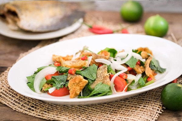 ยำปลาสลิด>>เนื้อปลาสลิดทอดกรอบกับน้ำยำเข้ากันได้ดี เป็นกับข้าวที่สามารถรับประทานได้กับทั้งข้าวต้มและข้าวสวย